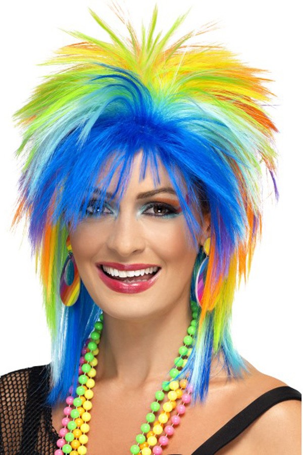 This Ladies 80s Fancy Dress Accessory Includes The Multicoloured Rainbow Punk Wig, Short And Spiky With Fringe